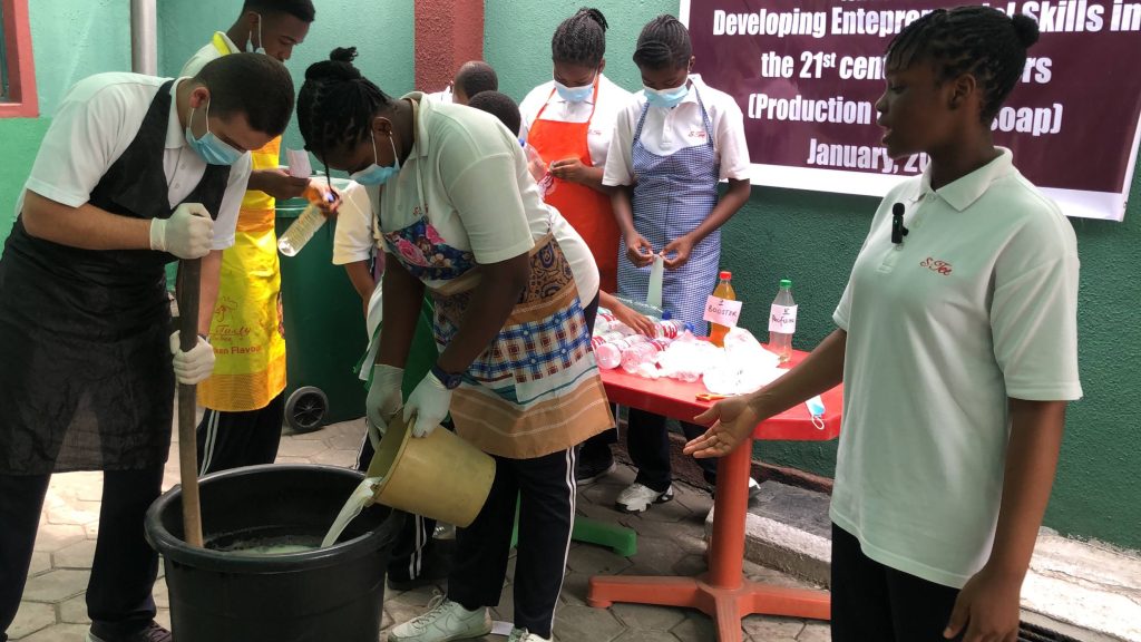 In this activity, students were engaged in the production, branding, marketing, usage and charitable distribution of liquid soap. The activity was designed to provide hands-on experience for students in business, creativity and community engagement. The activity empowered our students with essential entrepreneurial skills such as creativity, team work, problem solving and social responsibility. By producing and selling liquid soap, students learned practical business concepts and also contributed positively to the local community.